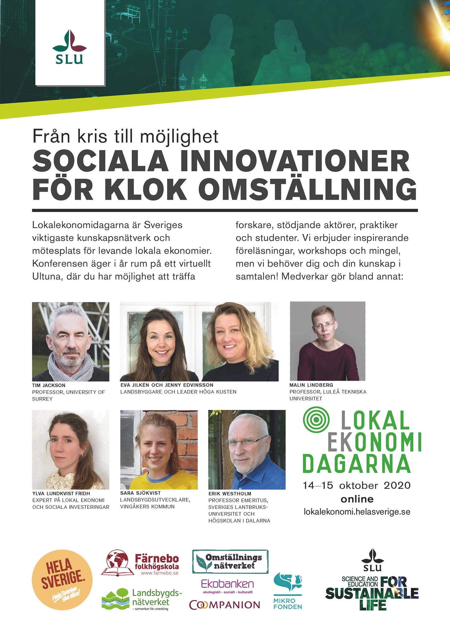 Lokalekonomidagarna den 14-15 oktober 2020 blir ett kunskapande möte mellan forskare och praktiker om lokal ekonomi och sociala innovationer Fokus ligger i år på sociala … Läs mer…